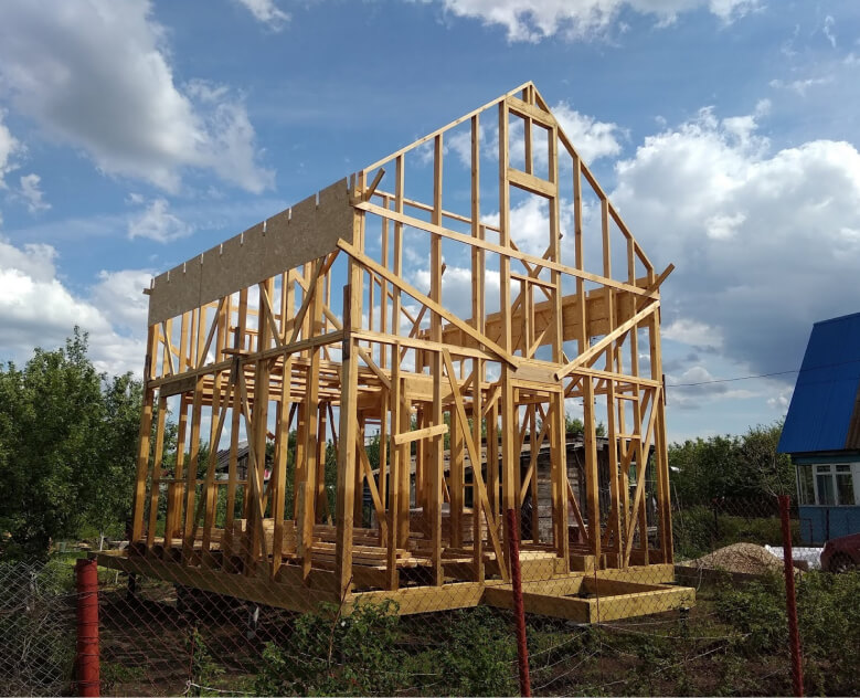 Основу дома составляет прочный деревянный или металлический каркас из стоек, балок и обвязок. Эта «скелетная» конструкция снаружи и изнутри обшивается плитными материалами (OSB, ЦСП), а пространство внутри стен заполняется эффективным утеплителем (минеральная вата, эковата, пенополистирол). Структура стены защищается от ветра и влаги специальными мембранами и пленками, создавая так называемый «пирог» стены, который обеспечивает высокие эксплуатационные качества.